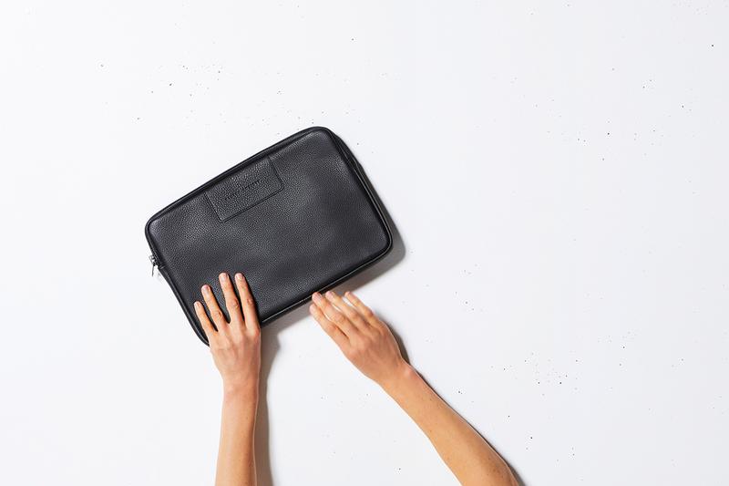 Products DescriptionFor when it's time to make tracks.? The 'Before I Leave' laptop case is handmade of premium shrunken pebble leather and solid YKK hardware.? Whilst the thick internal body padding and microfibre lining provide additional shock absorption.